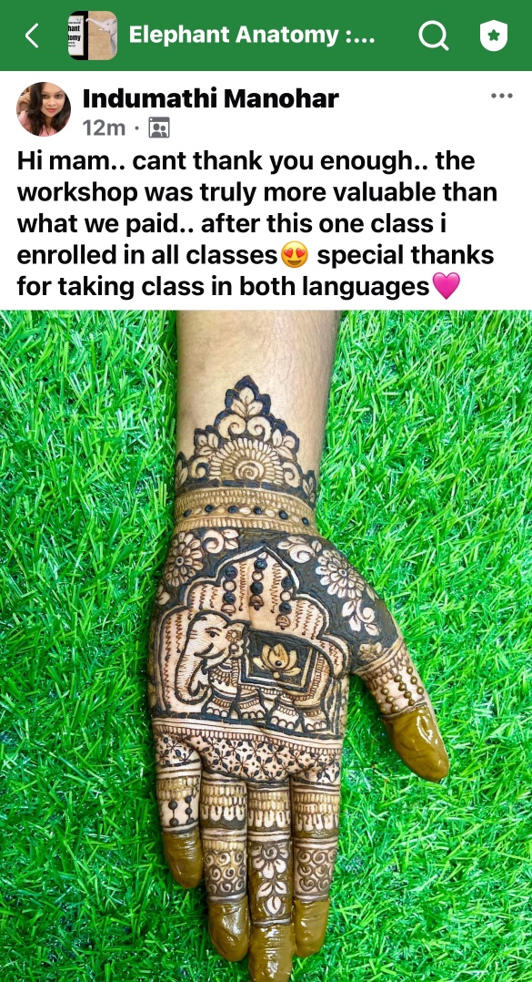 Workshop teaching Elephant and its anatomy to achieve perfect elephant either in drawing or in mehndi .